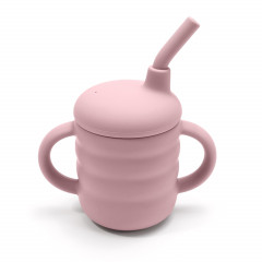 Чашката се предлага с подвижен капак и нежна сламка, подходяща за венците и зъбите на бебето. Спомага за развитието на фината моторика. При изпускане не се чупи и не боли.