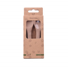Комплект от 2 части силиконови прибори - виличка и лъжичка, подходящ за миене в съдомиялна машина, с удобни дръжки за лесно захващане. Ергономично проектиран за малки ръчички с нарастващ апетит и зараждаща се независимост.