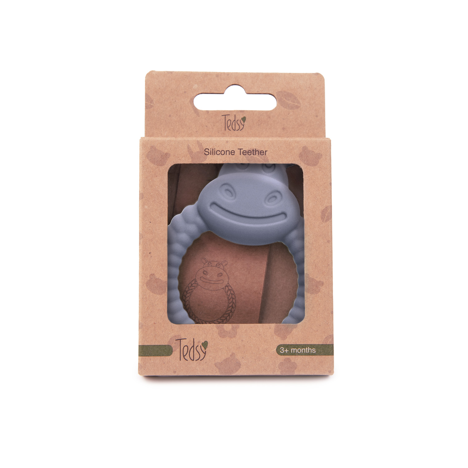 Бебешка силиконова гризалка Хипо - Сив