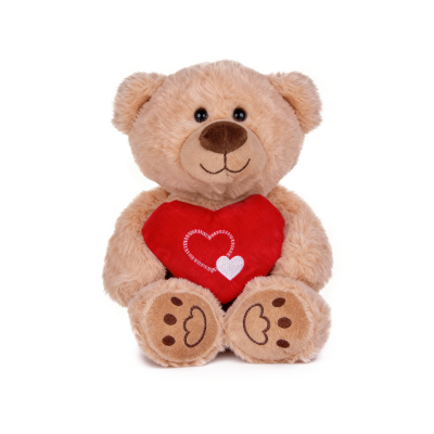 Закачливо плюшено мече държащо сърце. Подходящ подарък за най-обичания ви човек. Изработено от мек и изключително приятен на допир висококачествен плюш. Отговаря на европейска директива 2009/48/ЕО.