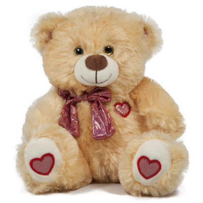 Мече с панделка и сърца - Кафяв