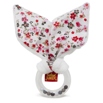 Бебешка дрънкалка със заешки ушички е част от колекцията на Амек Тойс, която е изцяло произведена в България. Изработена е от висококачествен късокосмест плюш в комбинация с памучен плат, оцветен с безвредни и анти алергични багрила. Бебешка дрънкалка със заешки ушички може да бъде включена още в първите игри на бебето. Погрижили сме се играчката да е изцяло безопасна, без лесноотделящи се части. С отличната си комбинация от цветове и подръкващ звук, тя ще предизвика фокусиране на погледа и неговото местене наляво и надясно. Този тип игри помагат да стимулирате правилния растеж и развитие на Вашето бебче.