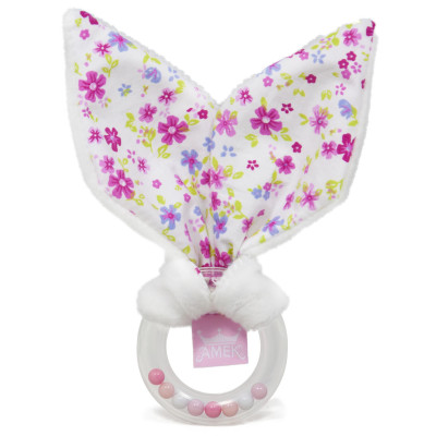 Бебешка дрънкалка със заешки ушички е част от колекцията на Амек Тойс, която е изцяло произведена в България. Изработена е от висококачествен късокосмест плюш в комбинация с памучен плат, оцветен с безвредни и анти алергични багрила. Бебешка дрънкалка със заешки ушички може да бъде включена още в първите игри на бебето. Погрижили сме се играчката да е изцяло безопасна, без лесноотделящи се части. С отличната си комбинация от цветове и подръкващ звук, тя ще предизвика фокусиране на погледа и неговото местене наляво и надясно. Този тип игри помагат да стимулирате правилния растеж и развитие на Вашето бебче.