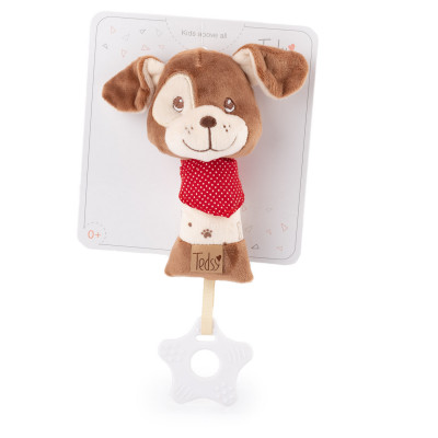 Държалката държалка куче Dixie е изключително средство, с помощта на което може се стимулира правилния растеж и развитие на Вашето бебче. С отличното си съчетание от цветове, висящ аксесоар, тя е безценна за привличане на погледа, местенето му наляво и надясно, и обръщане му по посока шум. Тя е мека и удобна за хващане от малките бебешки ръчички. Когато бъде стисната тя издава бибкащи звуци.