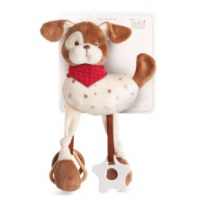 Бебешка играчка куче Sparky е част от серията играчки на Амек Тойс, която е изцяло произведена в България. Тя съчетава в себе си уникален дизайн и висококачествен плюш. Крачетата на кучето завършват с практични аксесоари - цветни рингове, които подрънкват и бежова звезда-чесална за венци/зъбки.
