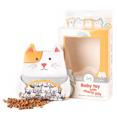 По време на игра развива - моториката, сетивното възприятие, зрителното възприятие. Инструкции за употреба Играчката съдържа торбичка с черешови костилки. За да я извадите, отлепете велкрото в предната част на играчката. Торбичката с черешови костилки може да се използва в два режима - топъл и студен. Подходяща е както за деца, така и за възрастни. Запазва топлината изключително добре и се адаптира към формата на тялото. По този начин топлината помага точно там, където е нужно – при напрежение във врата, стомашни спазми и колики при бебетата, болки в гърба, главоболие, студени крака и много други. Може също да се охлади и да се използва като студен компрес при спортни травми, натъртвания, навяхвания и подпухнали очи. Топъл режим Като топъл компрес торбичката е подходяща за колики при кърмачета и малки деца, подгряване на детска люлка, детско креватче или количка. Може да облекчите болка при колики на вашето бебе като просто поставите или масажирате нежно корема с торбичката. Костилките, освен че отделят топлина, правят и нежен масаж на коремчето. При възрастни е подходяща за ползване при болка в корема и ставите, настинки, менструална болка, болка и напрежение в шията, рамото или гърба. Загряване на торбичката в микровълнова фурна: Преди да започнете затоплянето, отстранете торбичката с черешови костилки от играчката и я поставете в микровълнова фурна (800 вата за 70 секунди). Уверете се, че мястото в използваната фурна е сухо и почистено, за да се предотврати изгаряне на плата. След това извадете торбичката с черешови костилки от микровълнова фурна и оставете да се охлади преди да я върнете обратно в играчката. Температурата не трябва да бъде по-гореща от обичайната температура на ръката Ви. Подръжте торбичката със черешови костилки в ръката си за известно време, за да проверите температурата. Загряване на торбичката в електрическа фурна: Загрейте фурната до 100°С. Преди да започнете затоплянето, отстранете торбичката с черешови костилки от играчката и я поставете върху чиста тава. Уверете се, че мястото в използваната печка е сухо и почистено, за да се предотврати изгаряне на плата. Поставете тавата в средата на фурната. Оставете торбичката с черешови костилки във фурната за максимум 15 минути. След това я извадете от фурната и оставете да се охлади преди да я върнете обратно в играчката. Температурата не трябва да бъде по-гореща от обичайната температура на ръката Ви. Подръжте торбичката с черешови костилки в ръката си за известно време, за да проверите температурата. Студен режим Препоръчва се торбичката с черешови костилки да се използва като студен компрес при главоболие, натъртвания и навяхвания. Охлаждане на торбичката: Когато се използва като студен компрес, торбичката с черешови костилки се поставя за няколко минути за във фризер или камера. Поставете я в найлонова торбичка, преди да я сложите вътре, за да се избегне намокрянето. Специални съвети за безопасно използване на играчка: - Никога не давайте топла торбичката с костилки извън играчката на Вашето дете. - Зaмeнeтe c нoвa тopбичĸa c костилки, aĸo cтapaтa cтaнe oбгopeнa или cи пpoмeни цвeтa. Toвa мoжe дa бъдe пpичинeнo oт нeпpaвилнa eĸcплoaтaция (пpeгpявaнe или пpecyшaвaнe). - Използвайте само оригиналния пълнеж и торбичка. - Поставяйте торбичката с костилки само в чиста и суха играчка. - По време на игра изкара