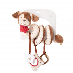 Бебешка спирала куче Twisty е средство, с помощта на което може да стимулирате правилния растеж и развитие на Вашето бебче. Висящите аксесоари са изключително удобни за хващане и дърпане, което стимули развитието на финната моторика на бебешките ръчички. Един от тях е снабден с малко огледалце, в което Вашето бебче ще може да се оглежда и да възприема своя образ. Спиралата е изработена от късокосмест плюш в комбинация с памучен плат. Дизайнът на самата играчка във формата на спирала я прави изключително удобна за поставяне на детско креватче, бебешка количка или всеки друг предмет, около който би моглада да се увие.