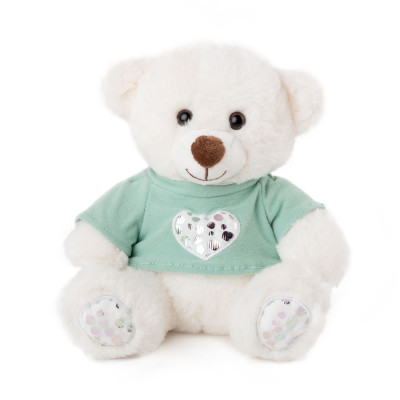 Мече със зелена тениска - Бял