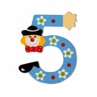 Декоративна дървена цифра - 5 - Син