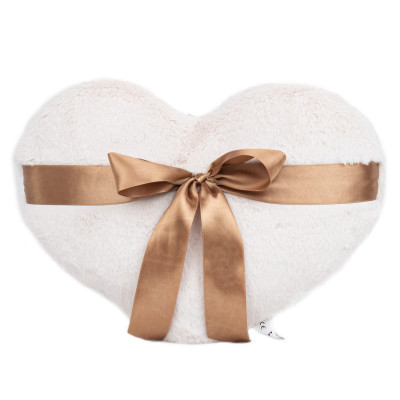 Плюшено сърце със златиста панделка e подходящ подарък за любимия човек.