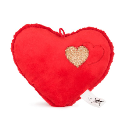 Плюшено сърце с бродерия два цвята. Изработено изцяло в България. Отговаря на европейската директива 2009/48/ЕО.