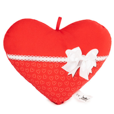 Плюшено сърце с панделка два цвята. Изработено изцяло в България. Отговаря на европейската директива 2009/48/ЕО.