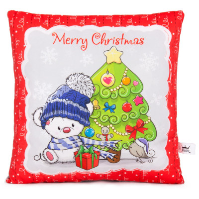 Внеси коледна атмосфера в дома си с Коледна възглавница с мече от Амек Тойс. Изработена изцяло в България от мек и изключително приятен на допир висококачествен плюш.