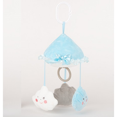 Бебешката Латерна с облачета е част от колекцията играчки на Амек Тойс, която е изцяло произведена в България с внимание към детайла и отношение към качеството. Тя съчетава в себе си висококачествен плюш и сатен в нежно розовата гама. При издърпване на висящата връвчица с ринг започва да звучи нежна, увлекателна мелодия, която спомага за успокояването и приспиването на най-милото ви същество. Поставена на нивото на гърдите на бебчето латерната ще помогне то да стабилизира уменията си за фиксиране и проследяване на обекти. Чрез ринга лесно ще я закачите за бебешка количка, кошара, стол за хранене и др.