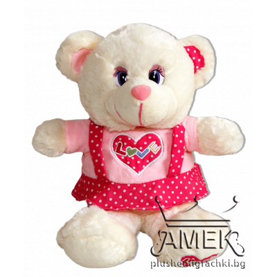 Мече с дрехи е изработено от мек и изключително приятен на допир висококачествен плюш.