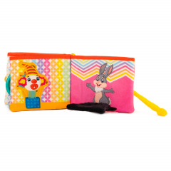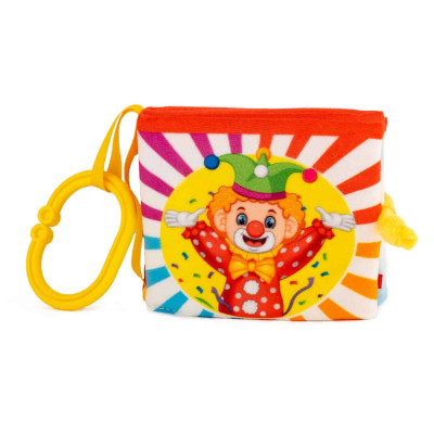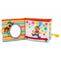 Мека бебешка книжка - Цирк е част от колекцията на Амек Тойс, която е изцяло произведена в България. Изработена е от висококачествен късокосмест плюш, оцветен с безвредни и анти алергични багрила. Подходяща от първия ден на бебето. Мека бебешка книжка - Цирк може да бъде включена още в първите игри на бебето. Погрижили сме се играчката да е изцяло безопасна, без лесно отделящи се части. С разгръщането на всяка страничка бебето ще усъвършенства фината моторика на пръстчетата и захвата си. Книжката включва много интересни забавления за бебето - бебешко огледалце в което всички бебета се забавляват, докато гледат своето отражение, лента за малките бебешки пръстчета, рингове за игра, страничка с бибитка и страничка включваща шумоляща шапчица, зад която се крие сладко зайче. Книжката е с практичен ринг за закачане за бебешка количка и кошара.