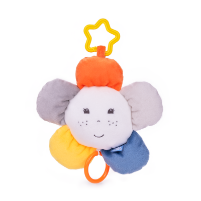Плюшена латерна - Цвете е част от колекцията играчки на Амек Тойс, която е изцяло произведена в България. Изработена е от висококачествен плюш в нежни бебешки цветове. Погрижили сме се да няма лесно отделящи се части, за да бъде подходяща дори и за най-малките. При издърпване на висящата връвчица зазвучава приятна мелодия, която спомага за успокояването и приспиването на най-милото ви същество. Чрез ринга лесно ще я закачите за бебешка количка, кошара, стол за хранене и др.