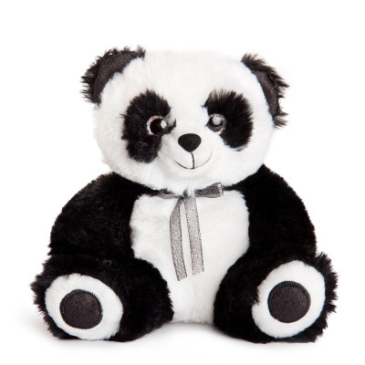 Когато си помислим за панда, не можем да не се усмихнем. Това е едно очарователно мече в черно и бяло, което се храни с бамбук. Точно толкова сладко е и нашето плюшено мече панда със сребриста панделка. То е изключително мекичко, защото е изработено от висококачествен плюш.