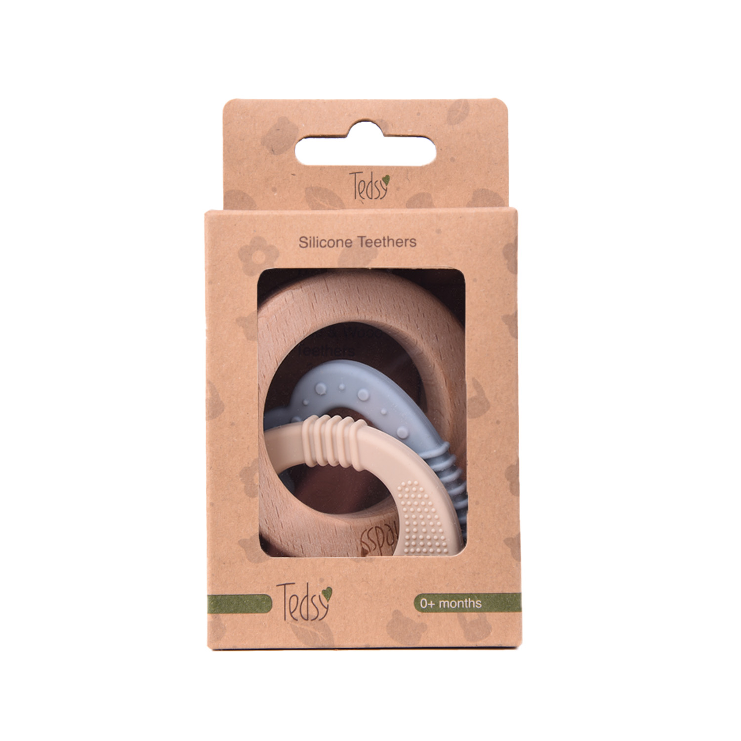 Силиконова гризалка с дърво 3 части - Бежов