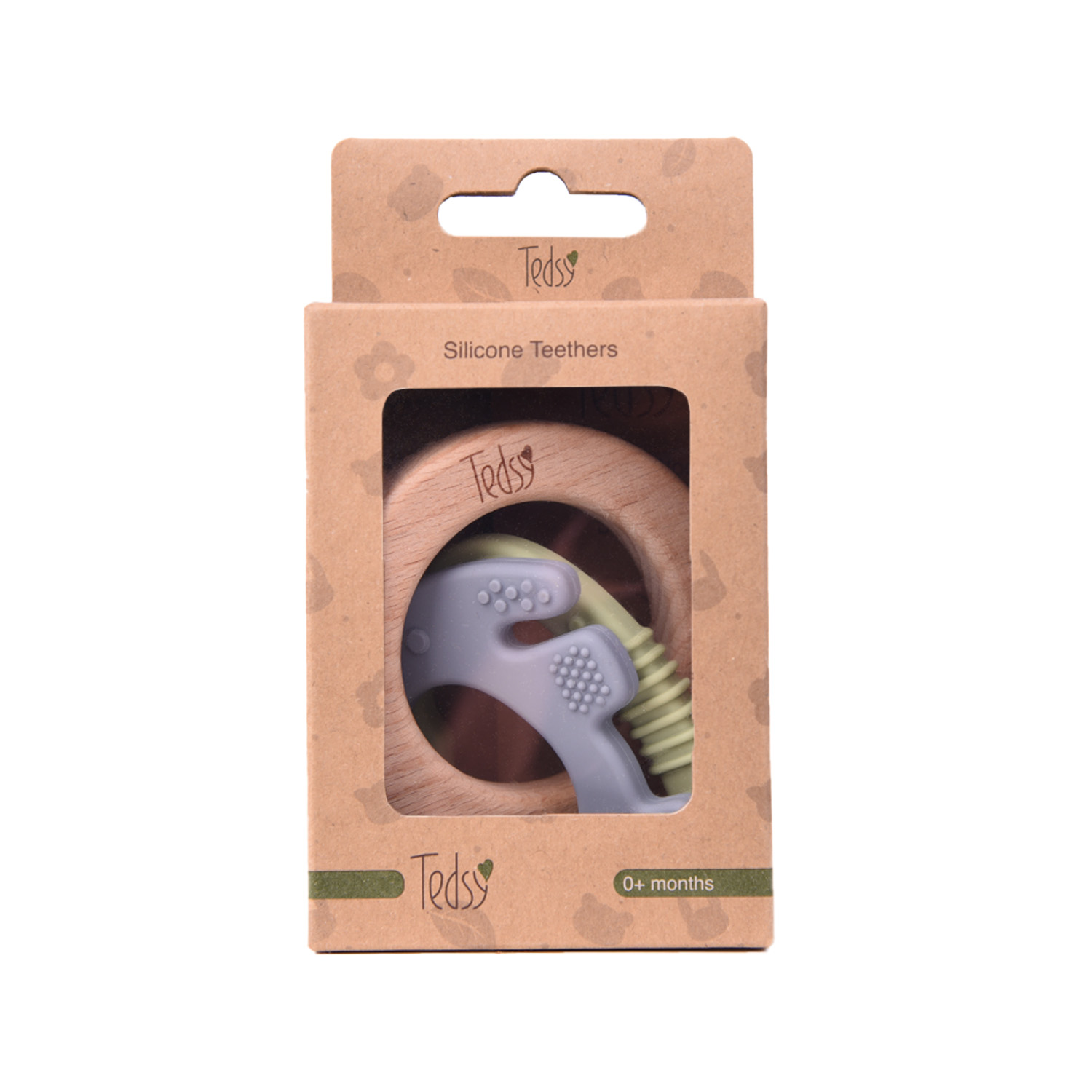 Гризалка за бебета, изработена от висококачествен силикон и дърво. Идеална за масажиране на нежните венци на бебето по време на растежа на млечните зъбки. Лесна за хващане. Спомага за развитието на фината моторика и способността на бебето да практикува хващане.