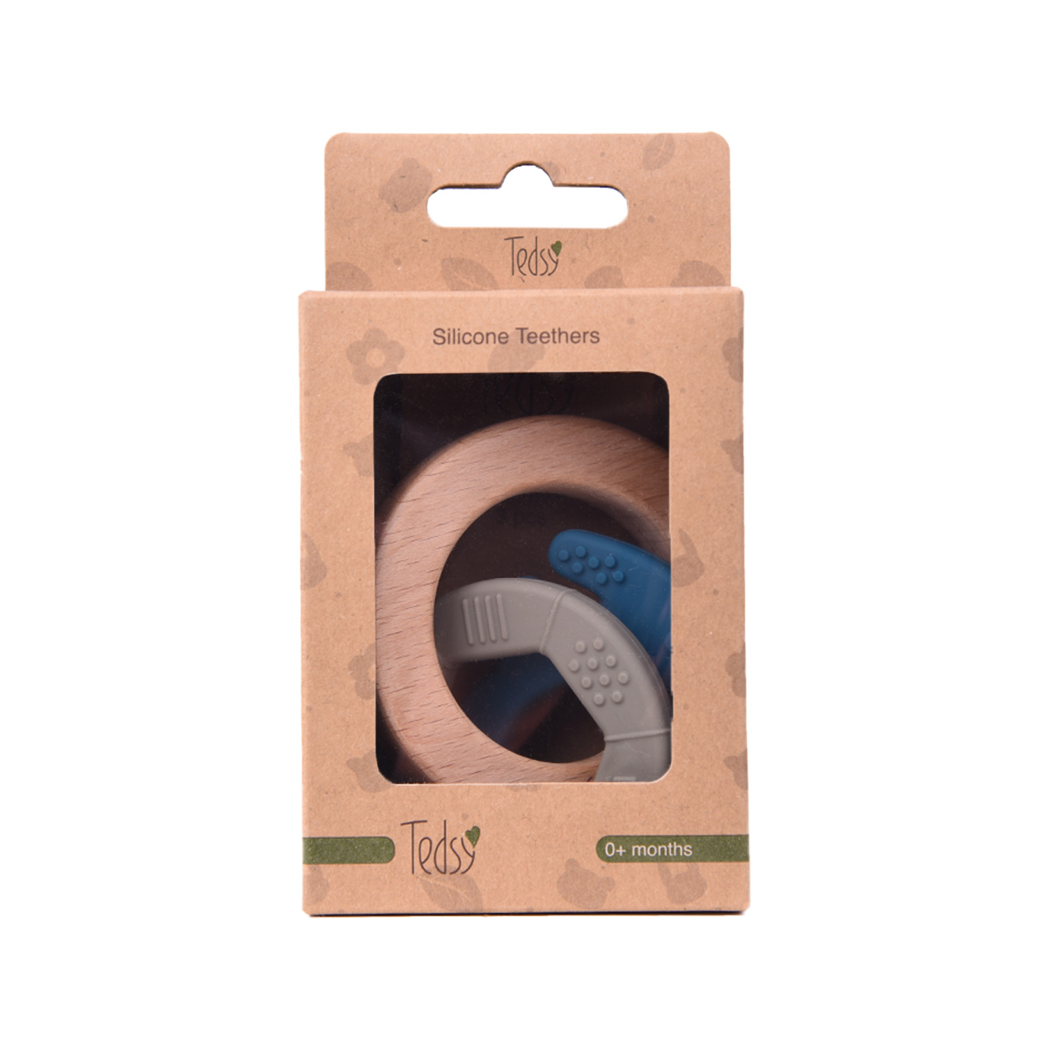 Гризалка за бебета, изработена от висококачествен силикон и дърво. Идеална за масажиране на нежните венци на бебето по време на растежа на млечните зъбки. Лесна за хващане. Спомага за развитието на фината моторика и способността на бебето да практикува хващане.