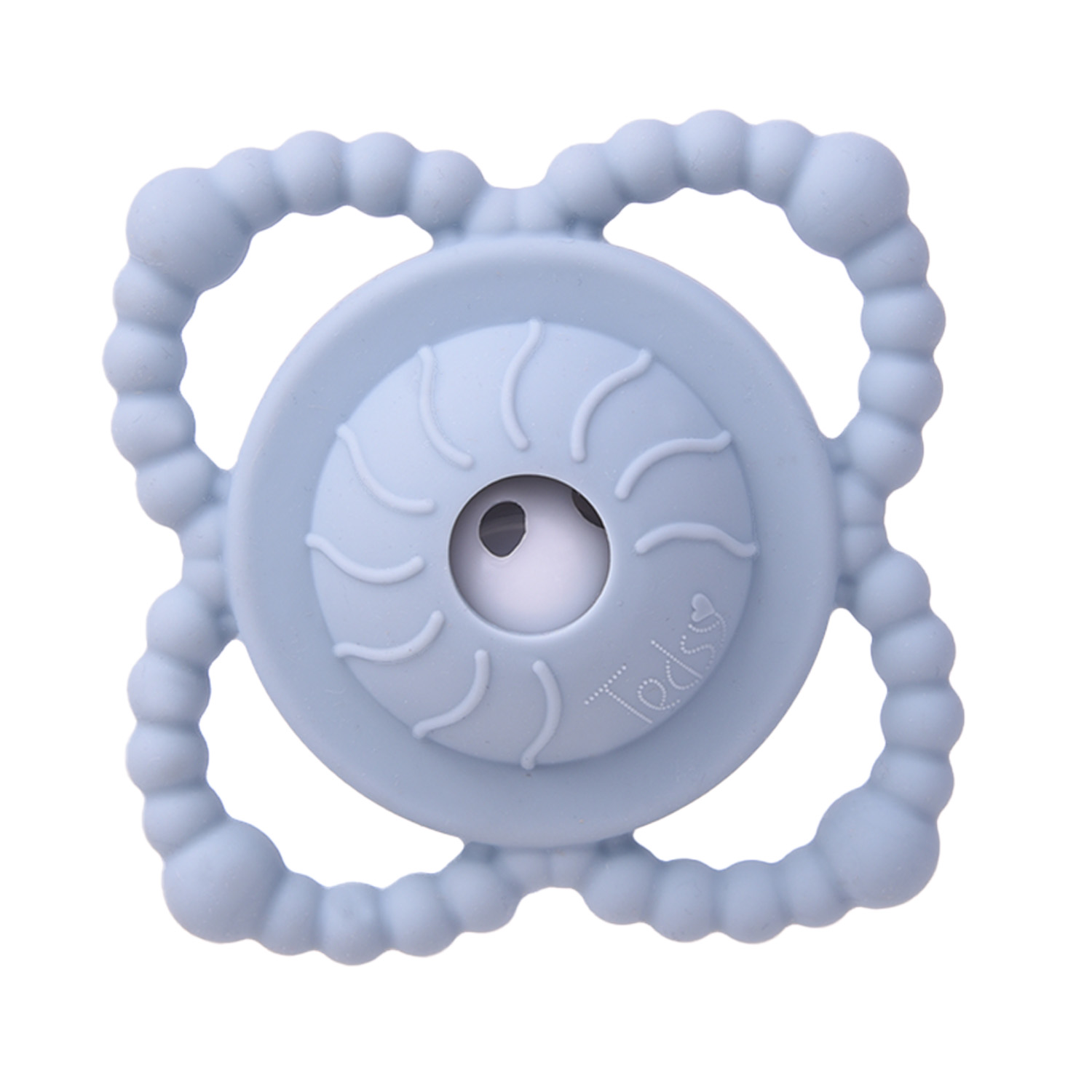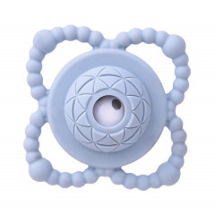 Гризалка с дрънкалка за бебета, изработена от висококачествен силикон. Идеална за масажиране на нежните венци на бебето по време на растежа на млечните зъбки. Лесна за хващане. Спомага за развитието на фината моторика и способността на бебето да практикува хващане.