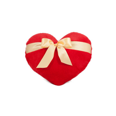 Плюшено сърце със златна панделка е подходящ подарък за любим човек.