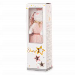 Представяме ви НОВАТА серия висококачествени модни плюшени куклички във формата на зайче, мече и еднорог с аксесоари - Shiny! Те са тук, за да забавляват всички! Тези малки плюшени играчки ще се превърнат в новите най-добри приятели на детето ви! В три различни цвята и всяка със собствен стил, ще правят впечатление със своите модни аксесоари. Кукличките Shiny са изключително подходящи за подарък. Те са грижовно поставени в специална кутия, която ще направи вашия подарък завършен. Леки и лесни за носене, Shiny ще бъдат навсякъде с вас и вашето дете за да даравят щастие и усмивки!