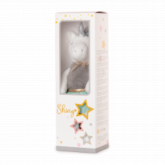 Представяме ви НОВАТА серия висококачествени модни плюшени куклички във формата на зайче, мече и еднорог с аксесоари - Shiny! Те са тук, за да забавляват всички! Тези малки плюшени играчки ще се превърнат в новите най-добри приятели на детето ви! В три различни цвята и всяка със собствен стил, ще правят впечатление със своите модни аксесоари. Кукличките Shiny са изключително подходящи за подарък. Те са грижовно поставени в специална кутия, която ще направи вашия подарък завършен. Леки и лесни за носене, Shiny ще бъдат навсякъде с вас и вашето дете за да даравят щастие и усмивки!