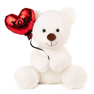 A playful teddy bear holding a heart. A suitable gift for your loved one. Made of soft and extremely pleasant to the touch high quality plush.